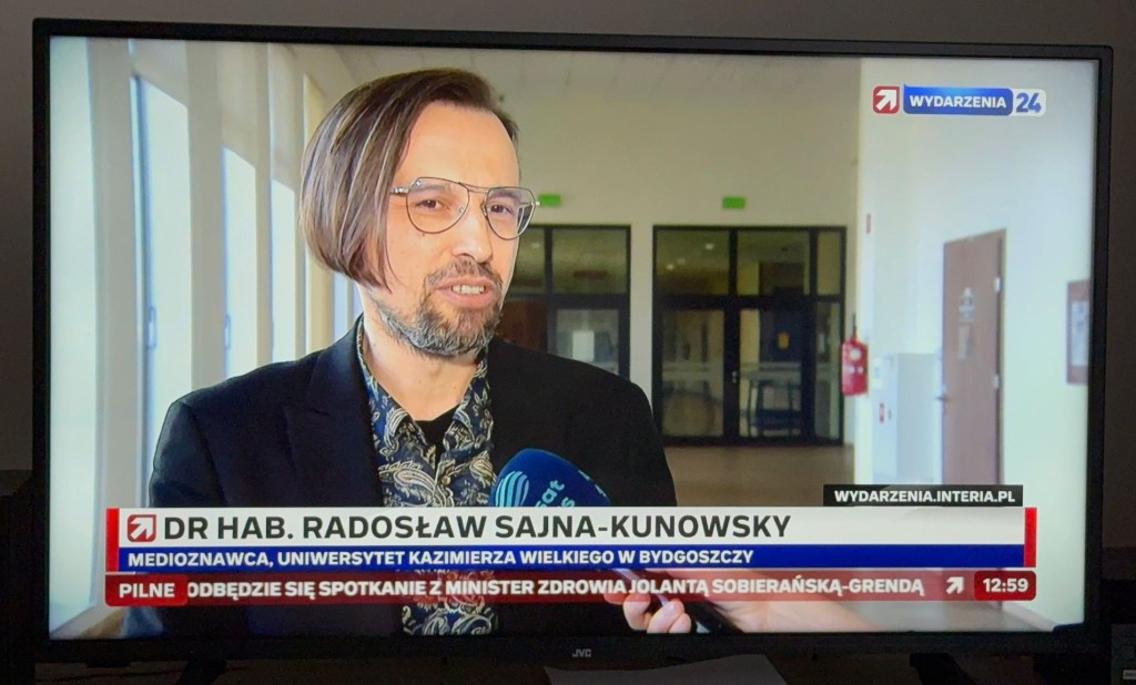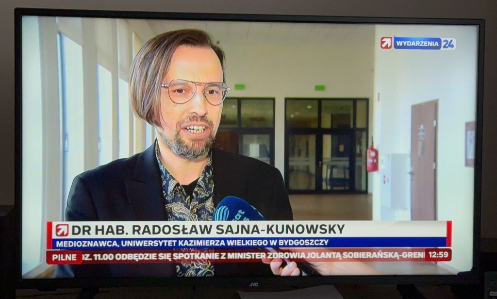 Wypowiedź dla programu informacyjnego „Zbliżenia” (TVP Bydgoszcz) nt. regionalnego etapu Olimpiady Wiedzy o Mediach (08.12.2023).